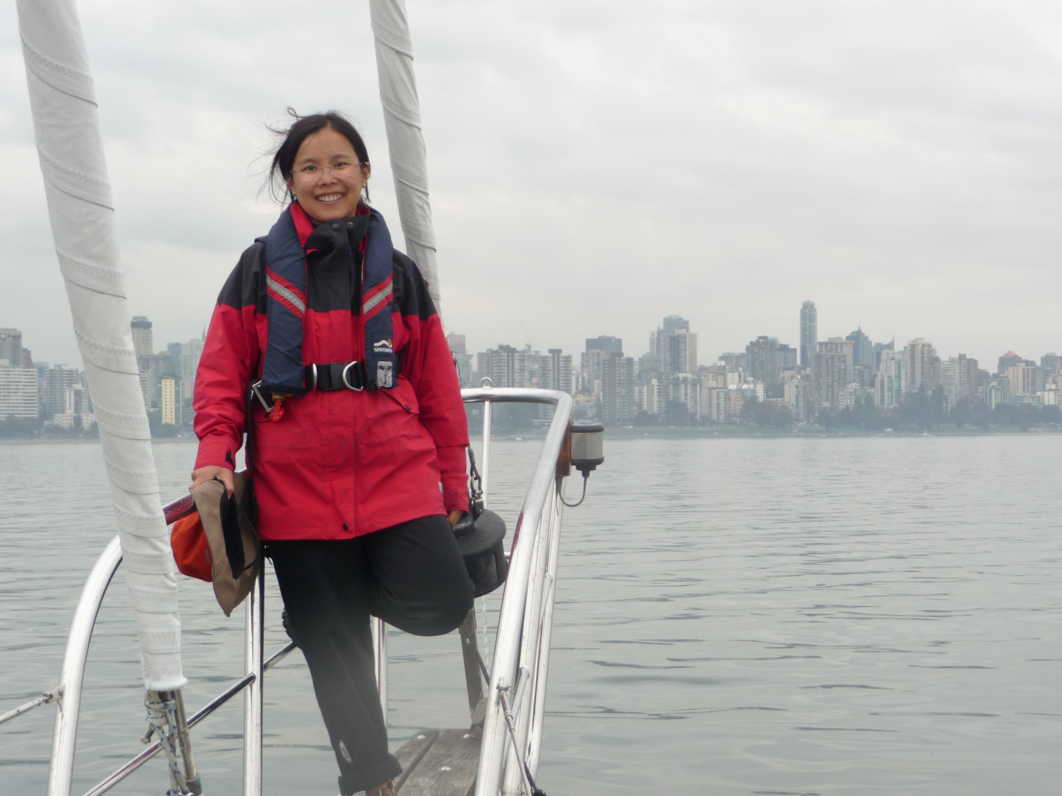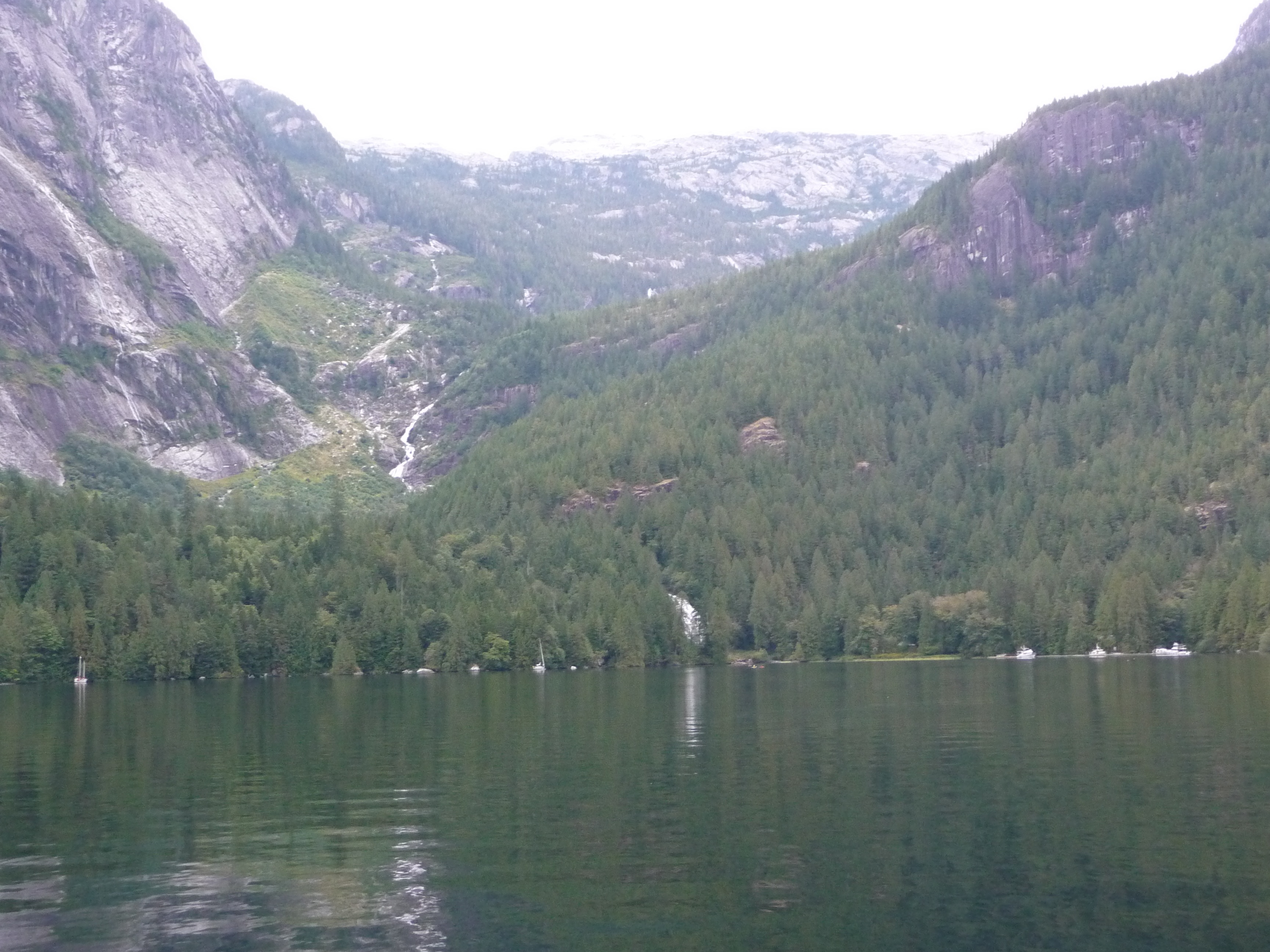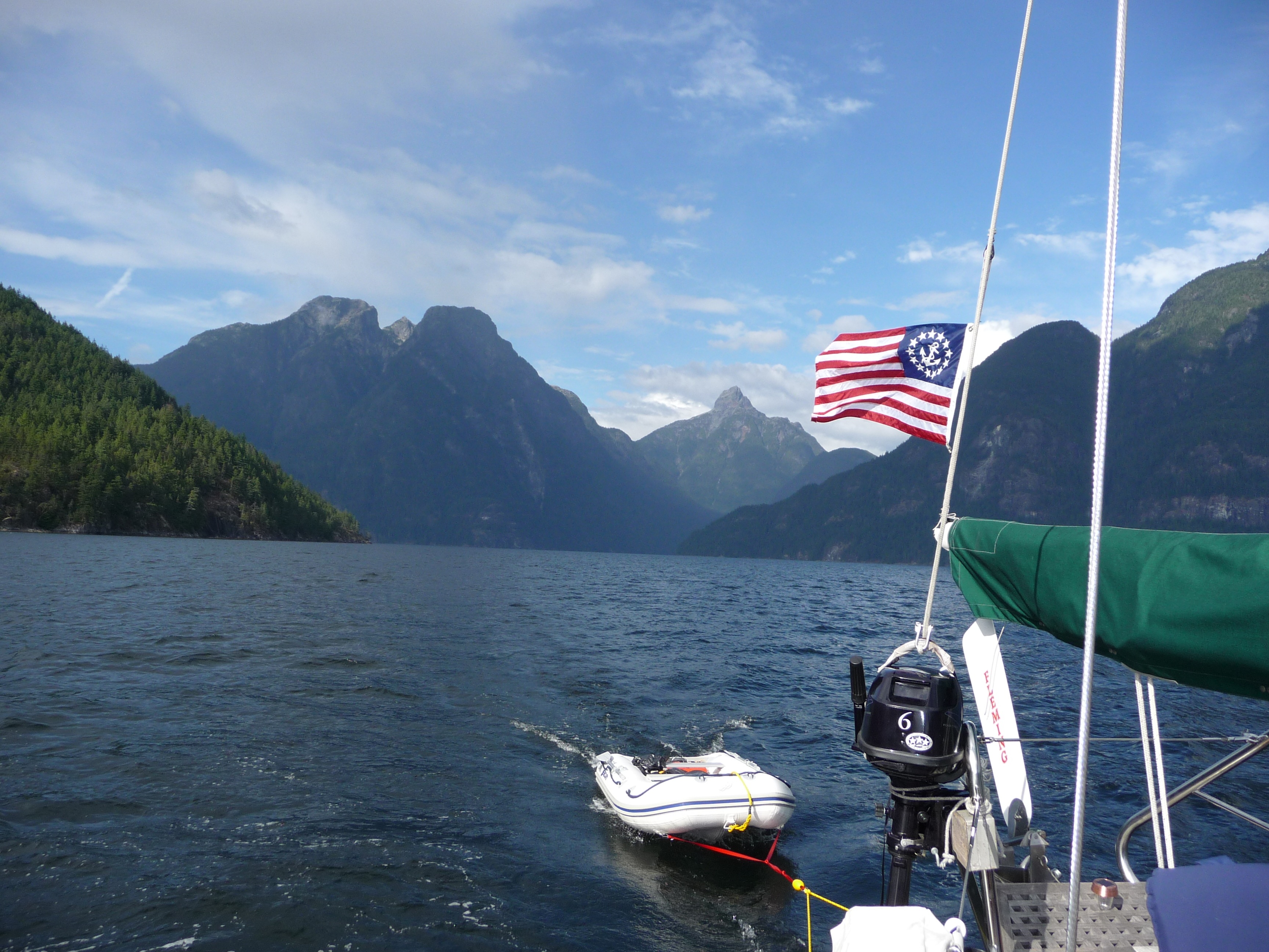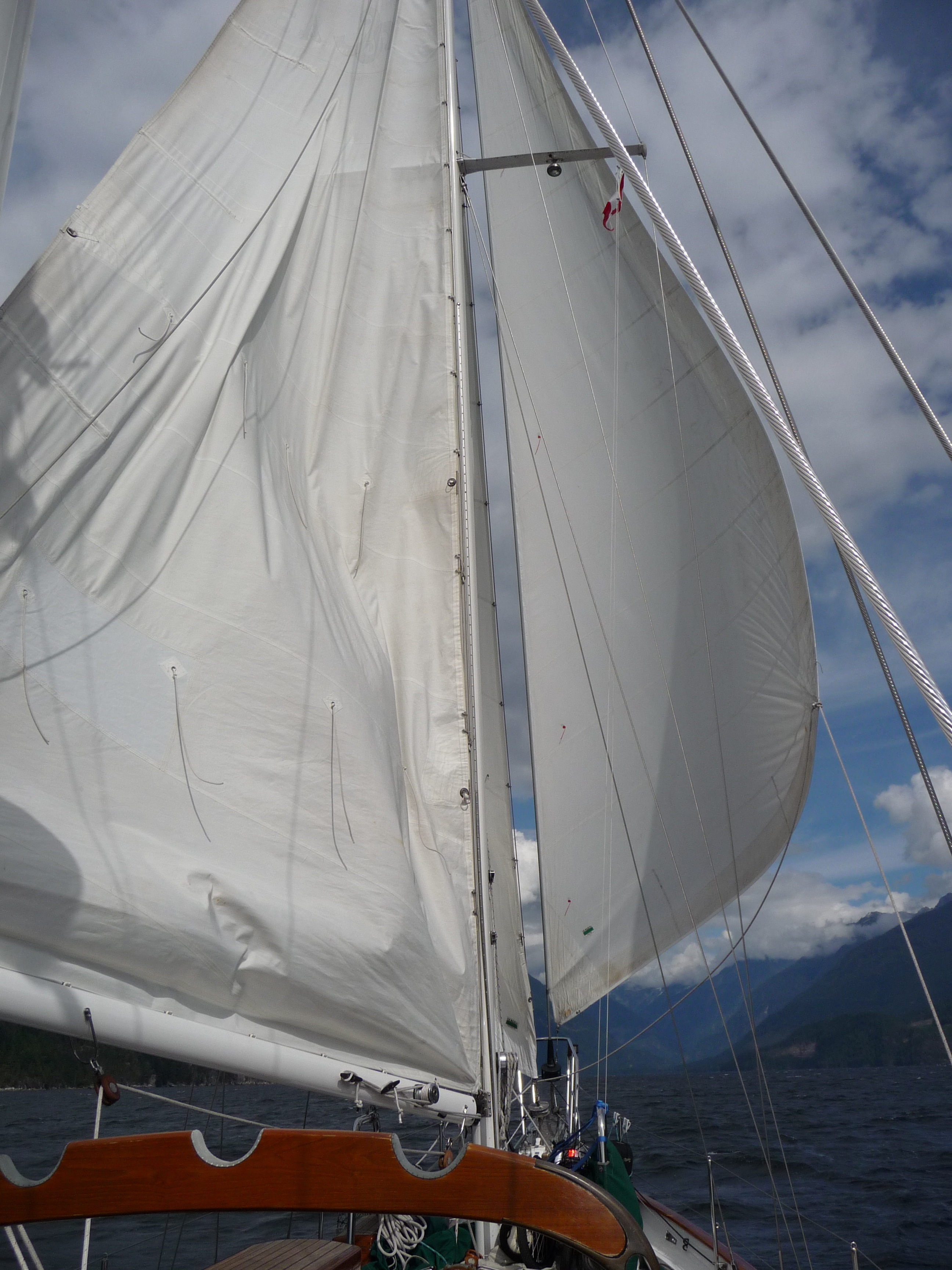 Up-anchored at 7:30am and got under way with the motor until the wind picked up in the middle of Georgia Strait. Got a bit too close to area WG (Whiskey Gulf is a military exercise area that is active on certain days) and a Canadian Coast Guard inflatable sped towards us . Captain 'Don't Fire Unless Fired Upon' slowed the boat and waited for them to come along-side. Turns out they were friendlies and just wanted to make sure we knew that WG was active. Fact is we heard the VHF broadcast earlier and were still outside WG and getting ready to tack. They sped away as fast they approached with their 300HP outboards. The next tack put us on a course for Vancouver, another place we haven't been to before. We anchored inside a very crowded area of False Creek, then drove the dinghy to Granville Island where we met James, Katherine, and kids for dinner. Dinghied back to Apropos in the dark and got to sleep early so we could get another early start the next day.