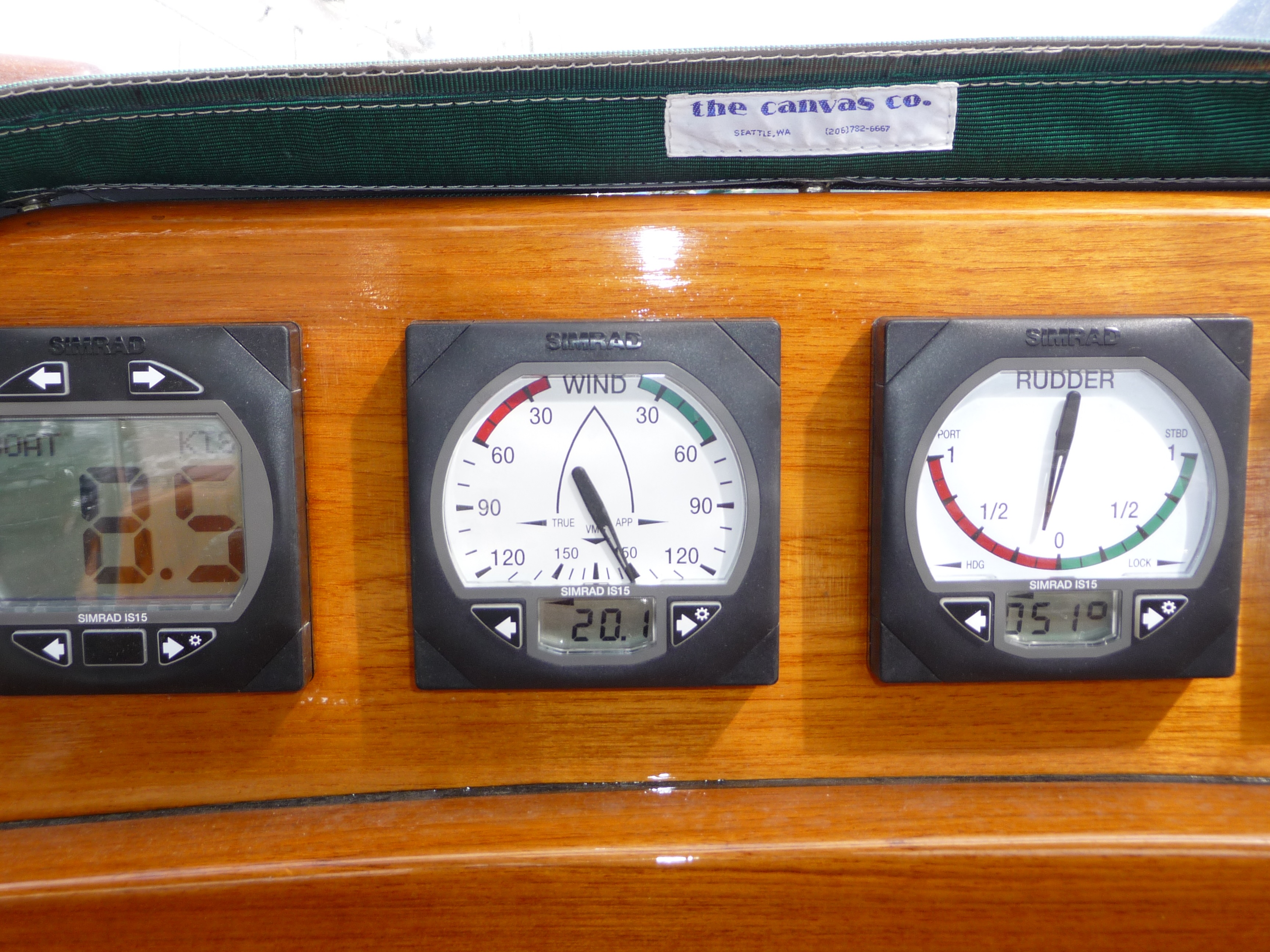 minutes, GPS at the helm, Radar overlayed on GPS at the nav. station,
