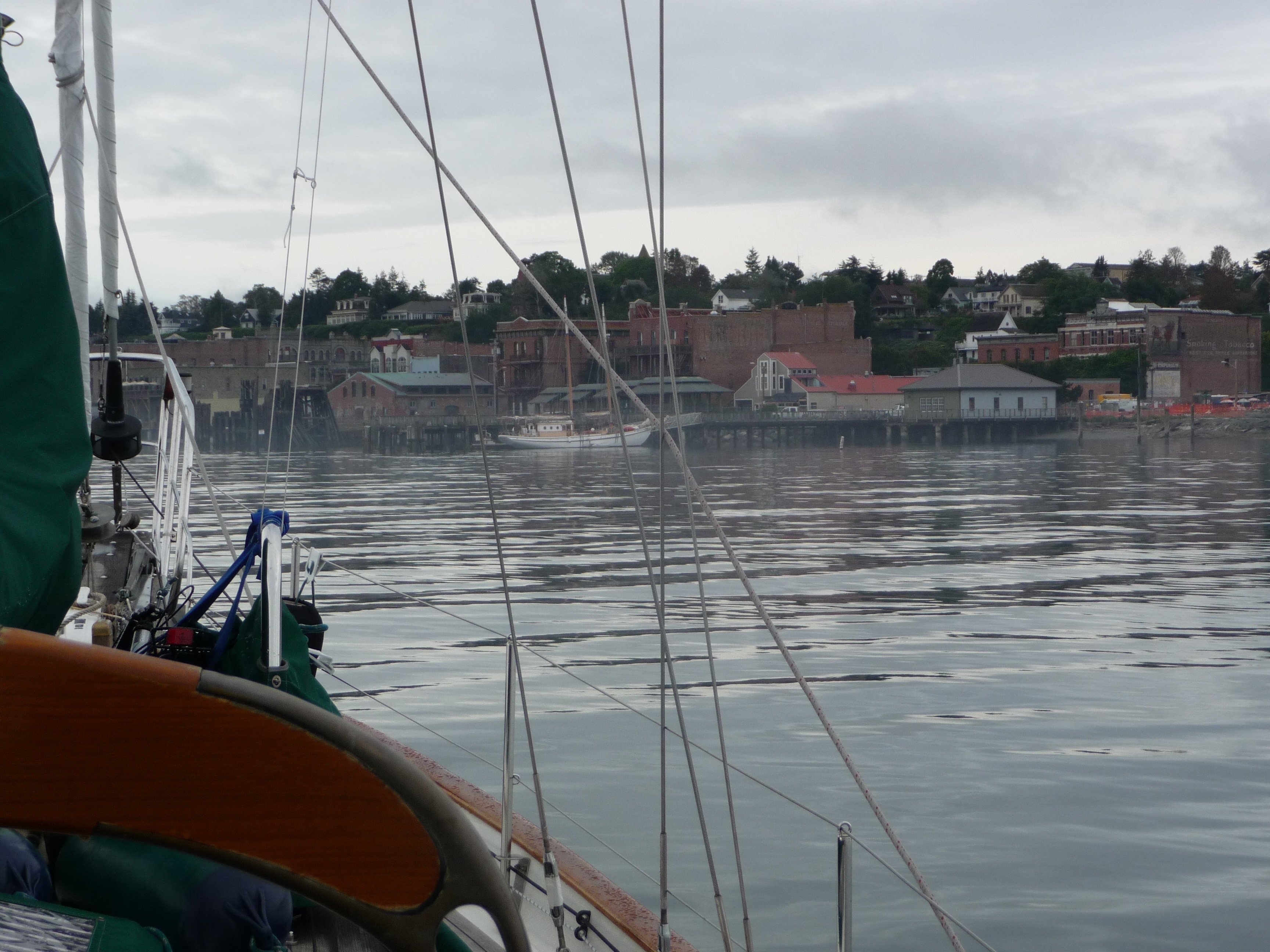 Departed Lake Union at 7:30am and topped off the tanks with 32 gallons of diesel at Ballard Oil. We had about a 45 minute wait at the Ballard Locks and tied up to a pier while waiting. High tide was at noon so we had positive current most of the day. It was a chilly sail into a 15 knot northerly with mostly cloudy skies. Motor-sailed most of the way and reached Port Townsend around 7pm and anchored out in the bay.