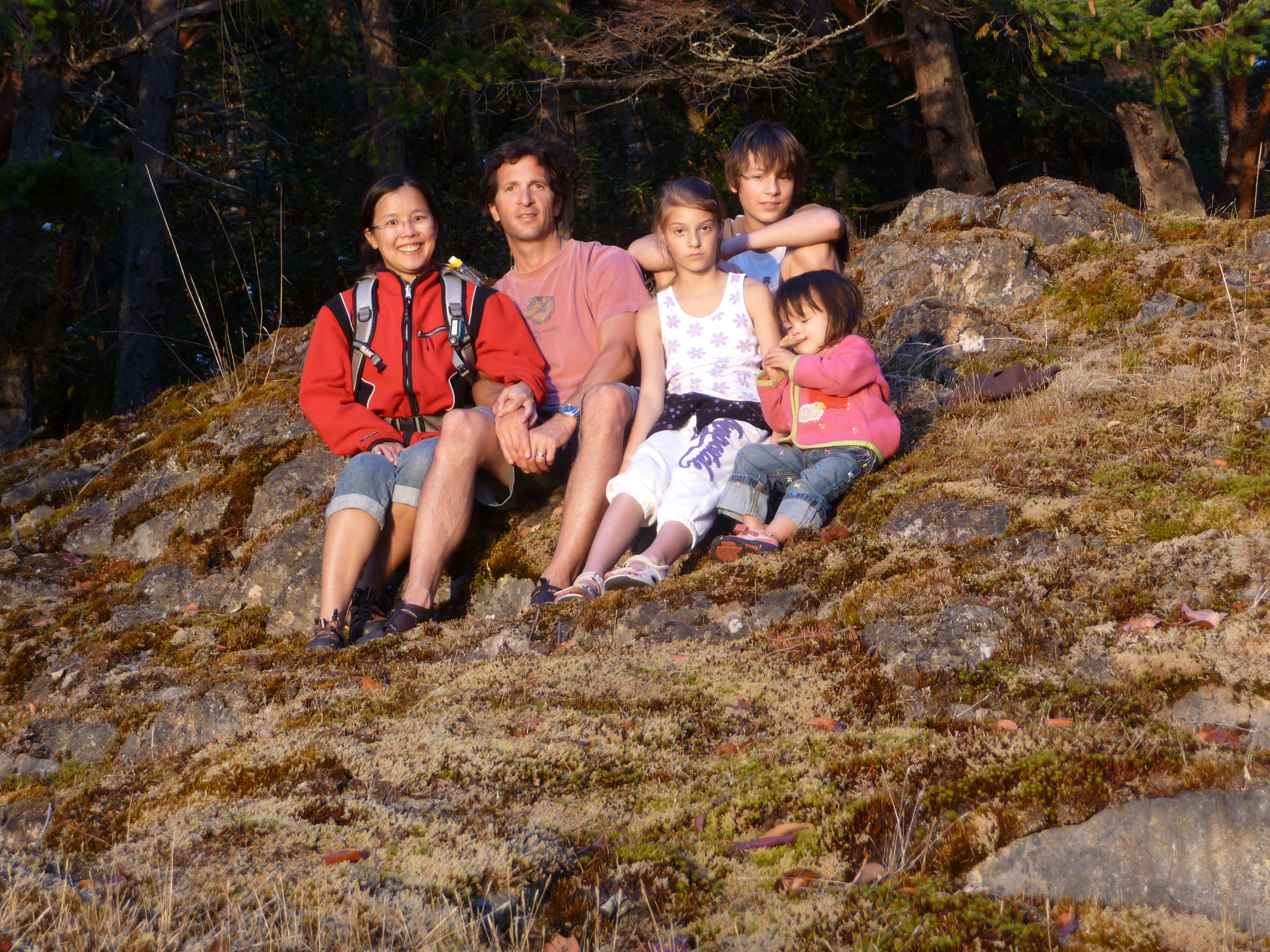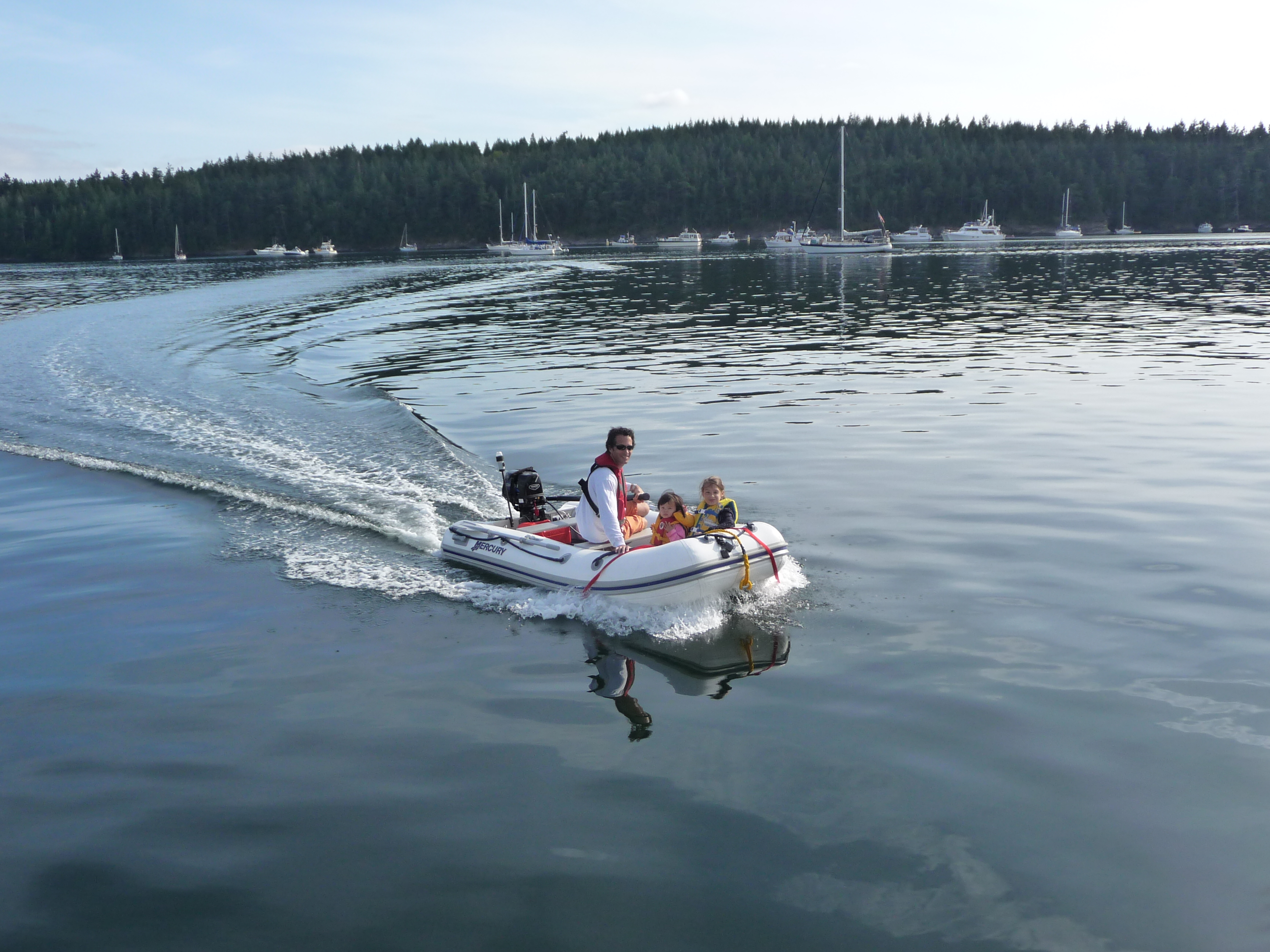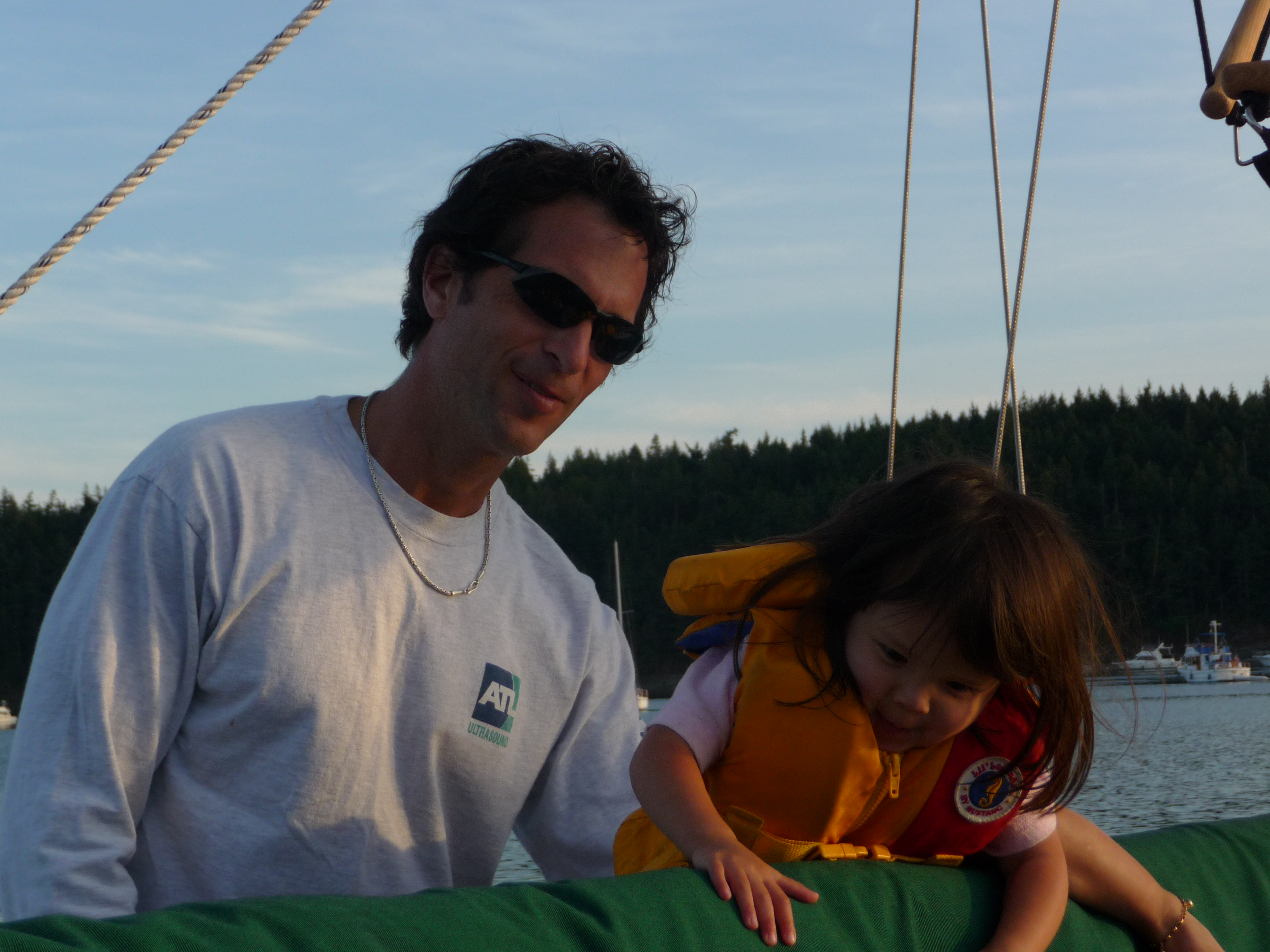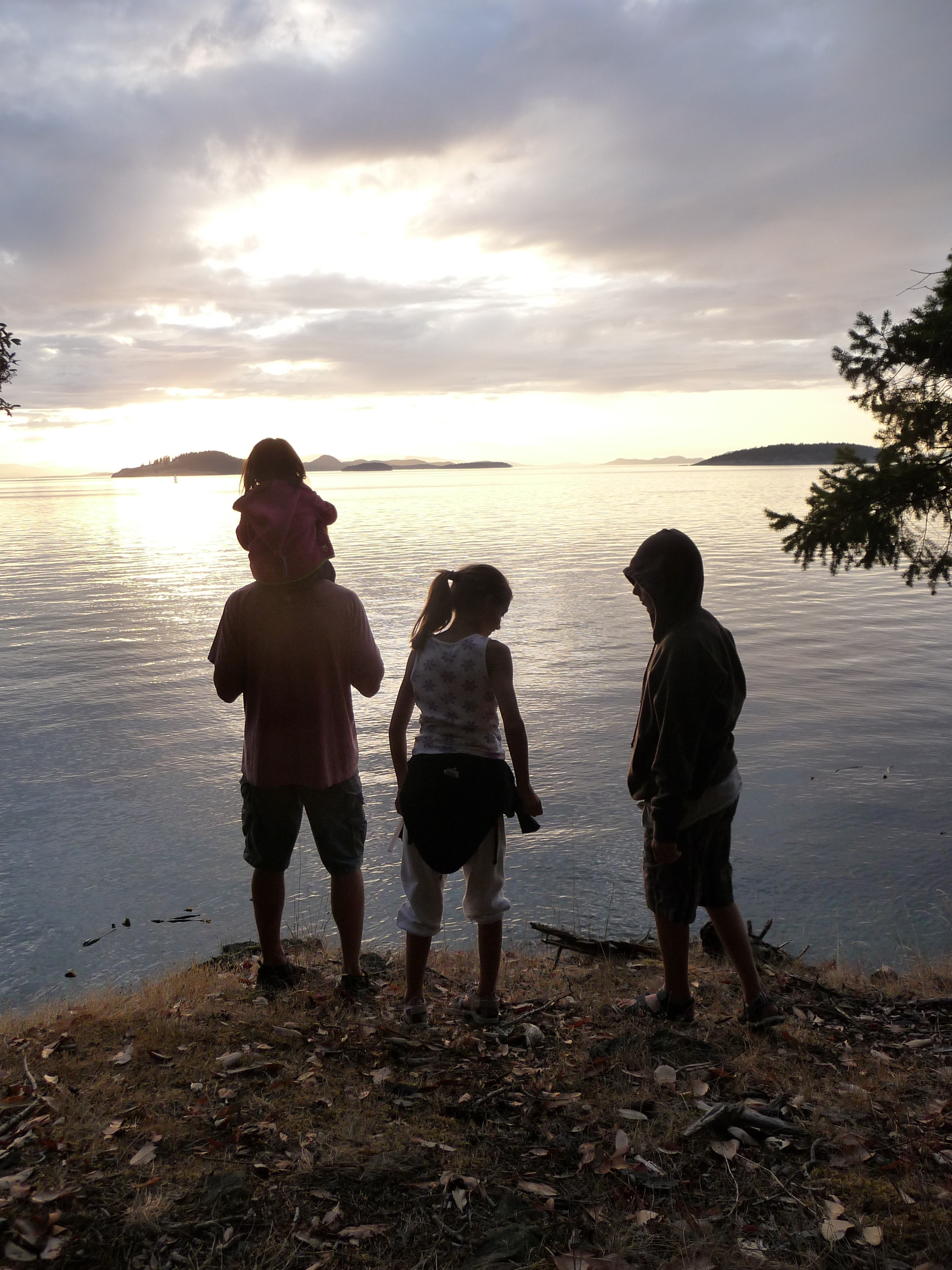 Took the boat through the locks on Friday evening so we could get an early start on Saturday. Departed at hight tide (7:30am) with positive current all the way up to Admiralty Inlet. Reached Port Townsend at noon so decided to cross the Strait of Juan de Fuca with light southerly winds. Sailed, motor-sailed, then motored to arrive at Cypress Island at 7pm. After tying to a mooring ball, went ashore and hiked around. Jacintha had fun running to keep up with Brady and Amanda.